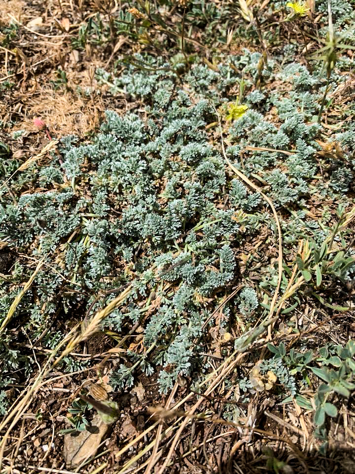 Leaves up to 3cm, silvery or silver-grey, bipinnate or pinnate with pinnatisect leaflets, with intercalary leaflets; ultimate leaflets rather round lobed.